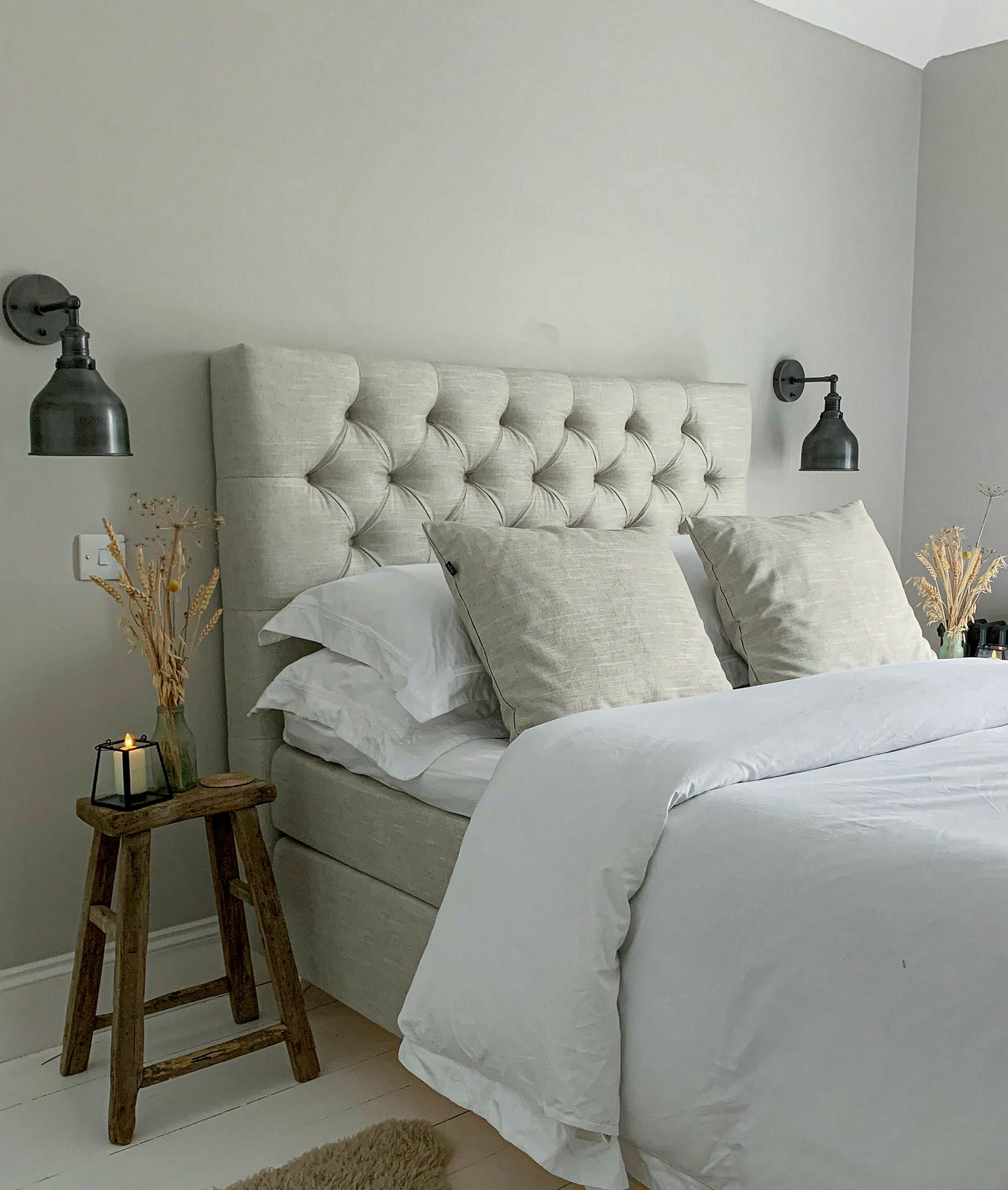 A classic deep-buttoned headboard. Available in several sizes. Choose from 44 exclusive fabrics in different colours. The Bornö headboard is hand-made in Sweden.