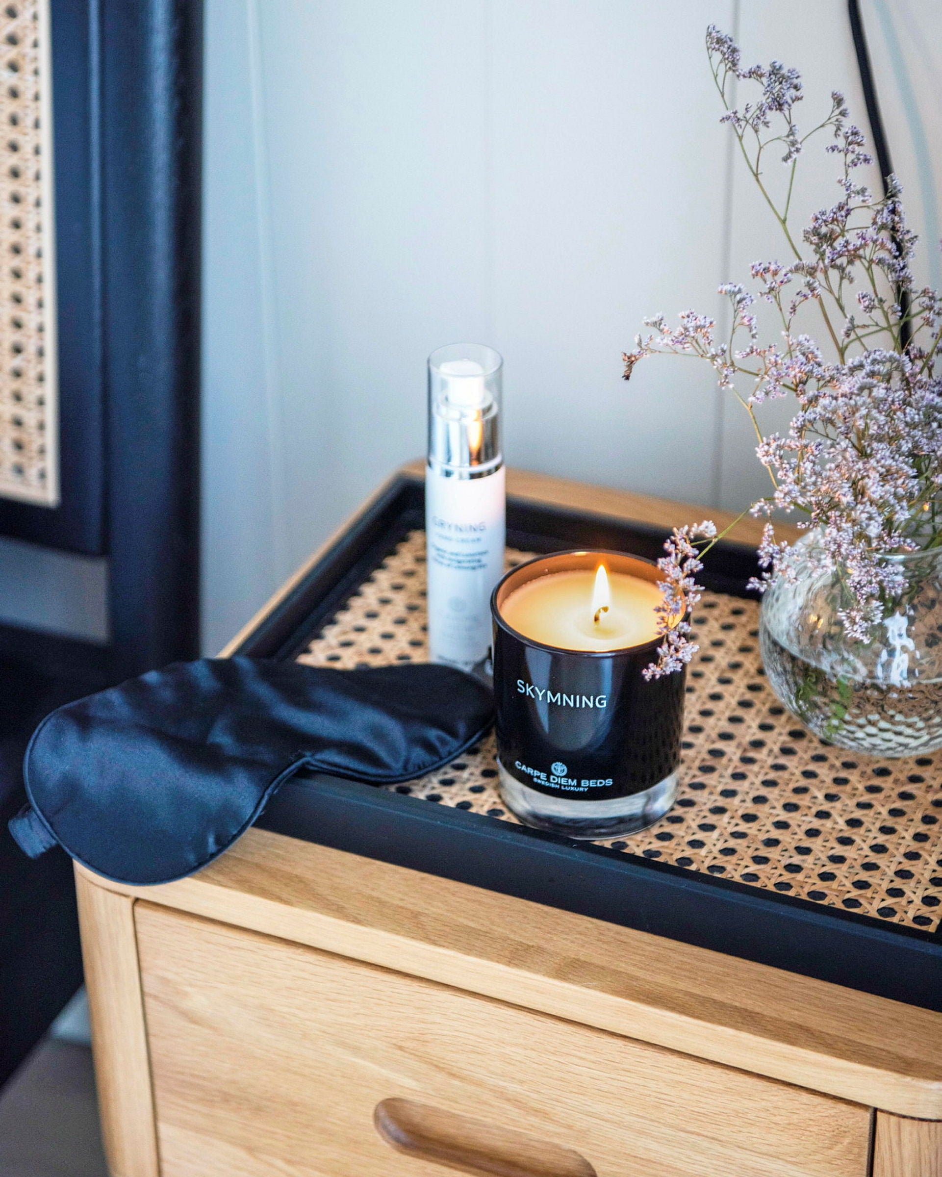 Luxurious hand-made scented candle in a glass holder. This organic soy wax scented candle has fragrance notes of rose, grapefruit, jasmine and cedar. Weight: 260 g.