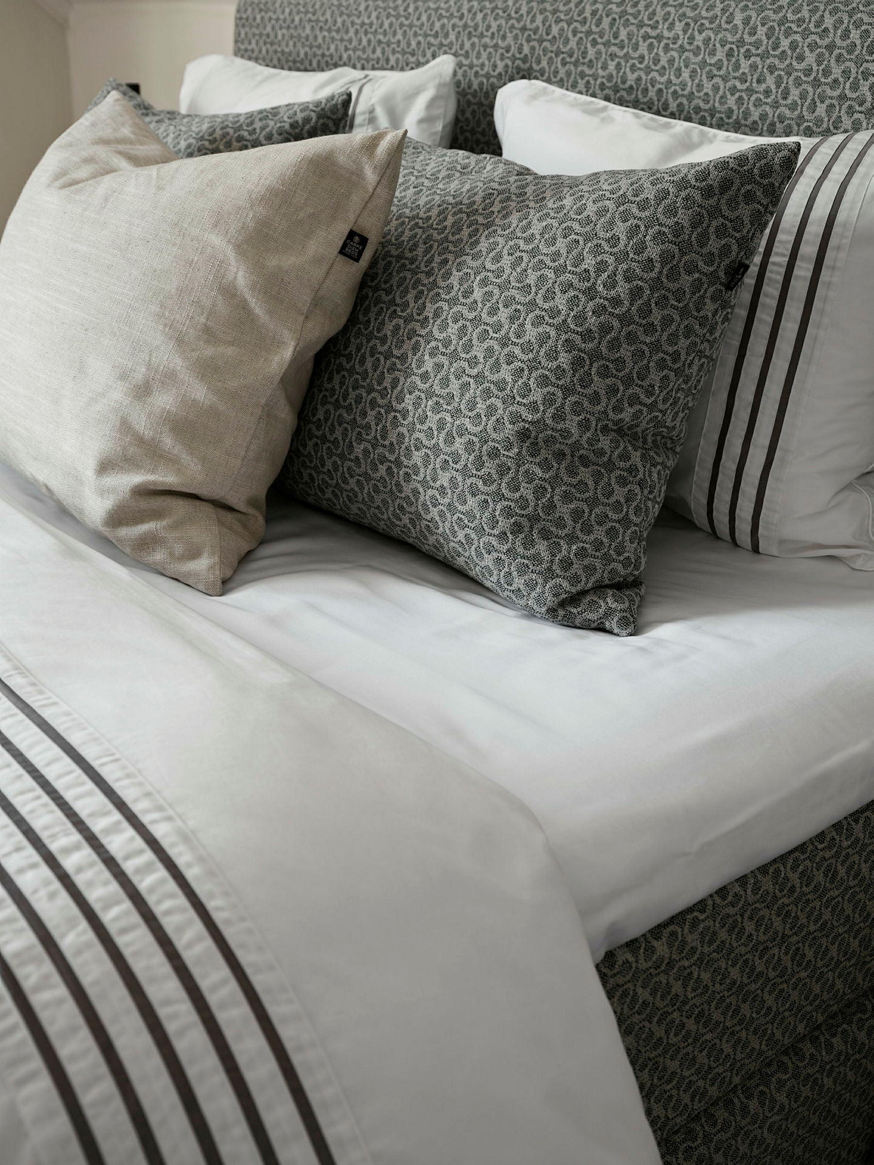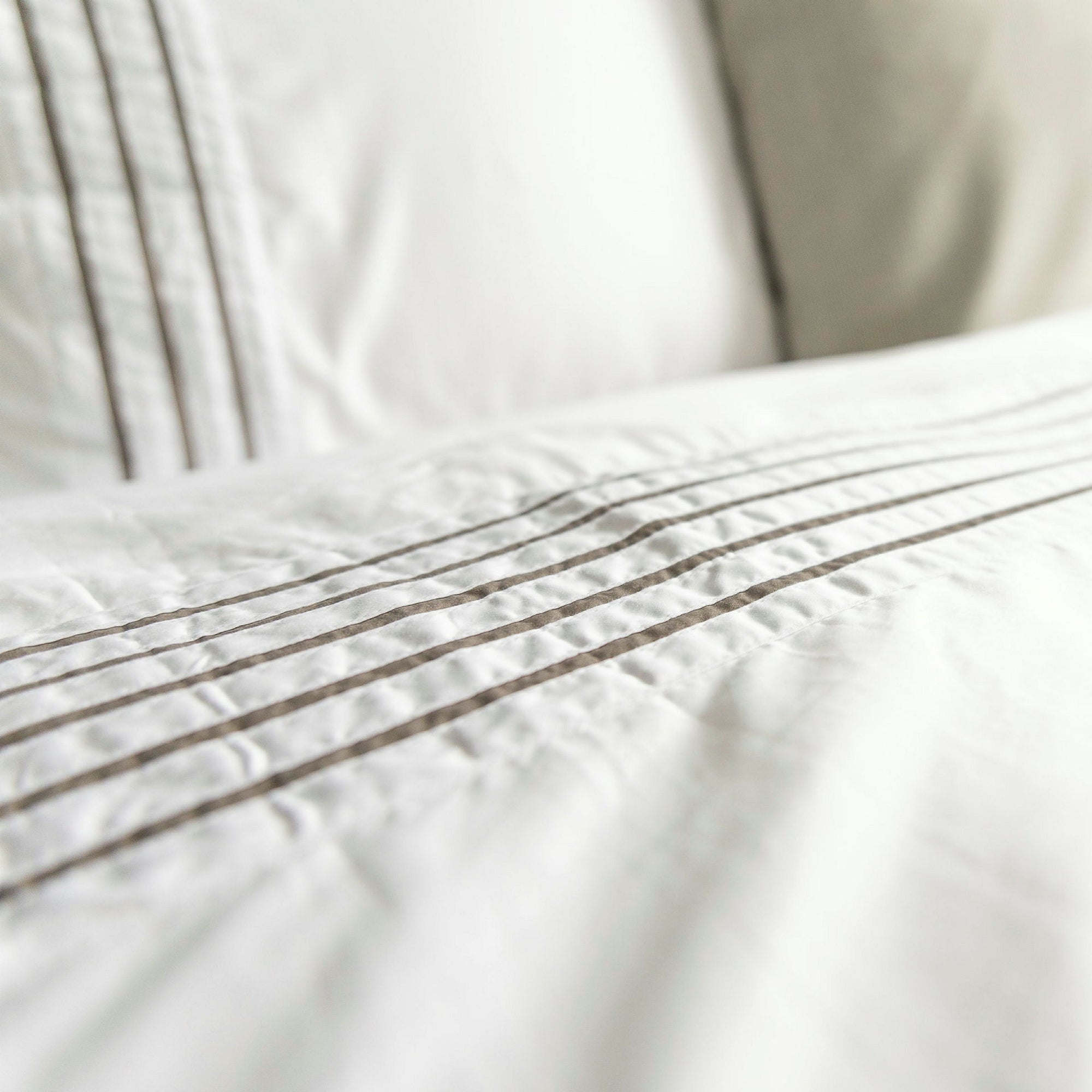 Exclusive duvet cover and pillow case in white cotton satin with decorative grey lines, 150x210 cm. Made in Egyptian cotton with a thread count of over 300 threads per inch. Oeko-Tex® Standard 100 certified.
